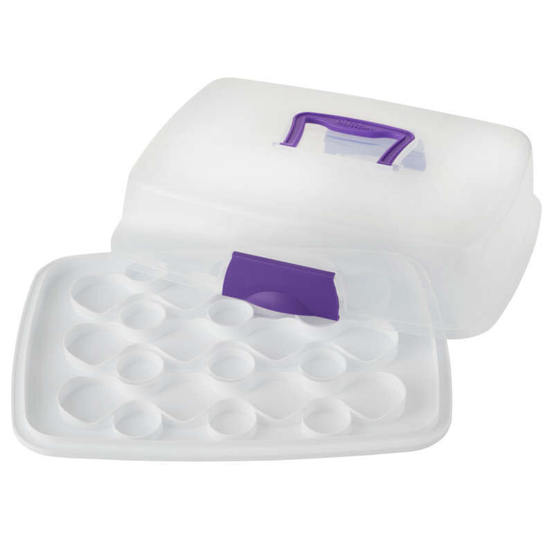 Peut contenir un gâteau de 22,8 cm x 33 cm (9 x 13 po), 12 cupcakes standard ou 24 mini cupcakes.