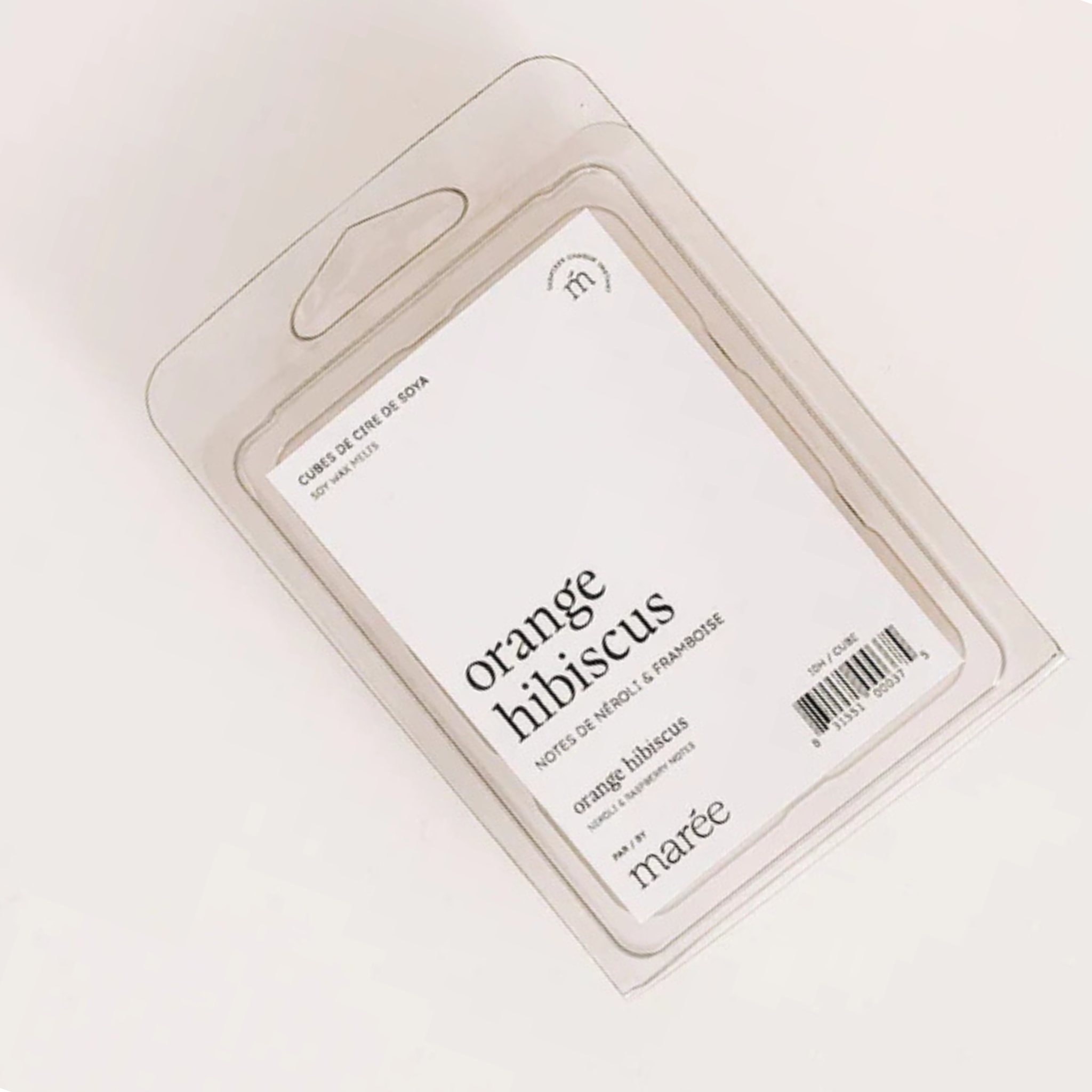 The Orange and Hibiscus soy wax melts for the diffuser will charm you with their explosive notes of tangy orange and exotic flowers.